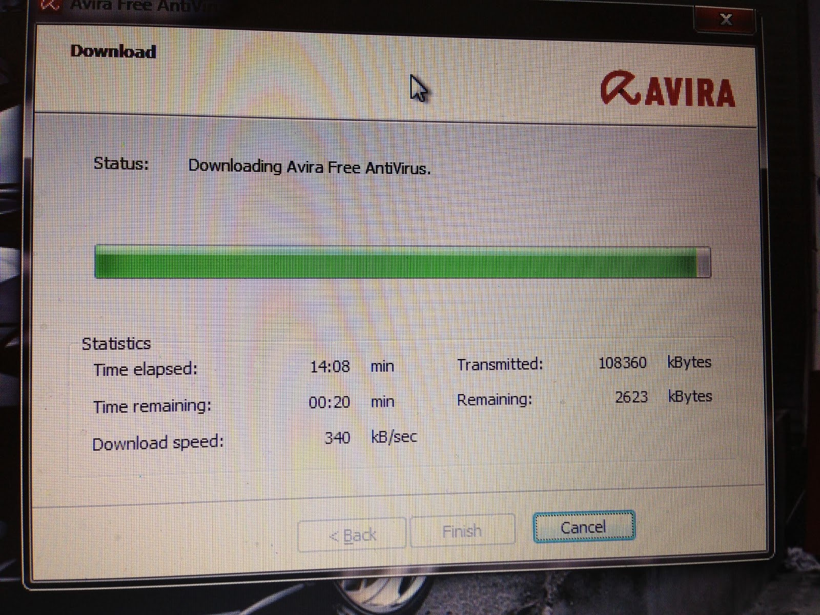 Step 3) After you press next Avira will start downloading to your computer mine took 15 minutes to download.